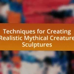 Techniques employed in sculpting mythical creatures included carving, modeling, and casting. Carving involved removing material from stone or wood to create detailed forms, as seen in ancient Greek sculptures of centaurs and griffins. Modeling utilized malleable materials like clay to shape figures, allowing for intricate designs and textures, evident in Mesopotamian artifacts depicting mythical beings. Casting, particularly in bronze, enabled the replication of complex shapes and was widely used in ancient China for dragon sculptures. These methods collectively contributed to the rich artistic traditions surrounding mythical creatures in various ancient cultures.